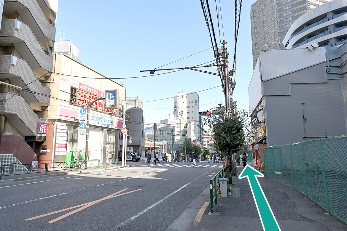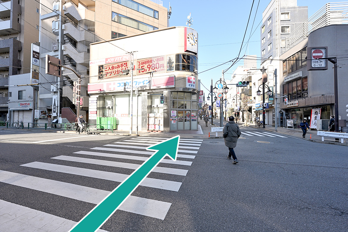 矢印方向へ横断歩道を渡ります。